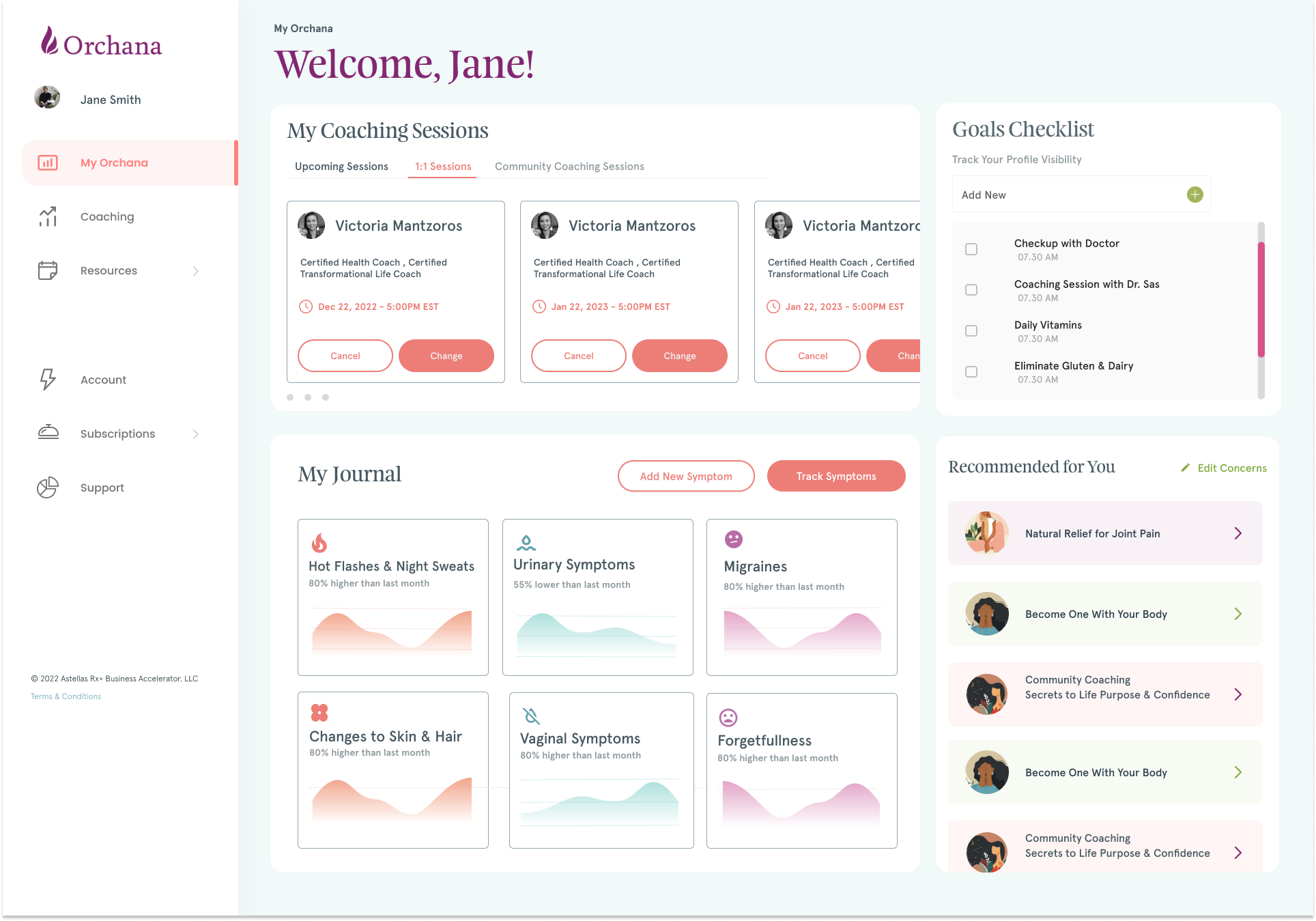 Developed in partnership with Astellas Pharma’s Rx+ program, Orchana was a virtual-first menopause care platform combining health coaching, community support, and science-backed resources. The platform evolved toward a behavior-change model integrating continuous glucose monitoring and personalized insights to help women better manage menopausal symptoms.